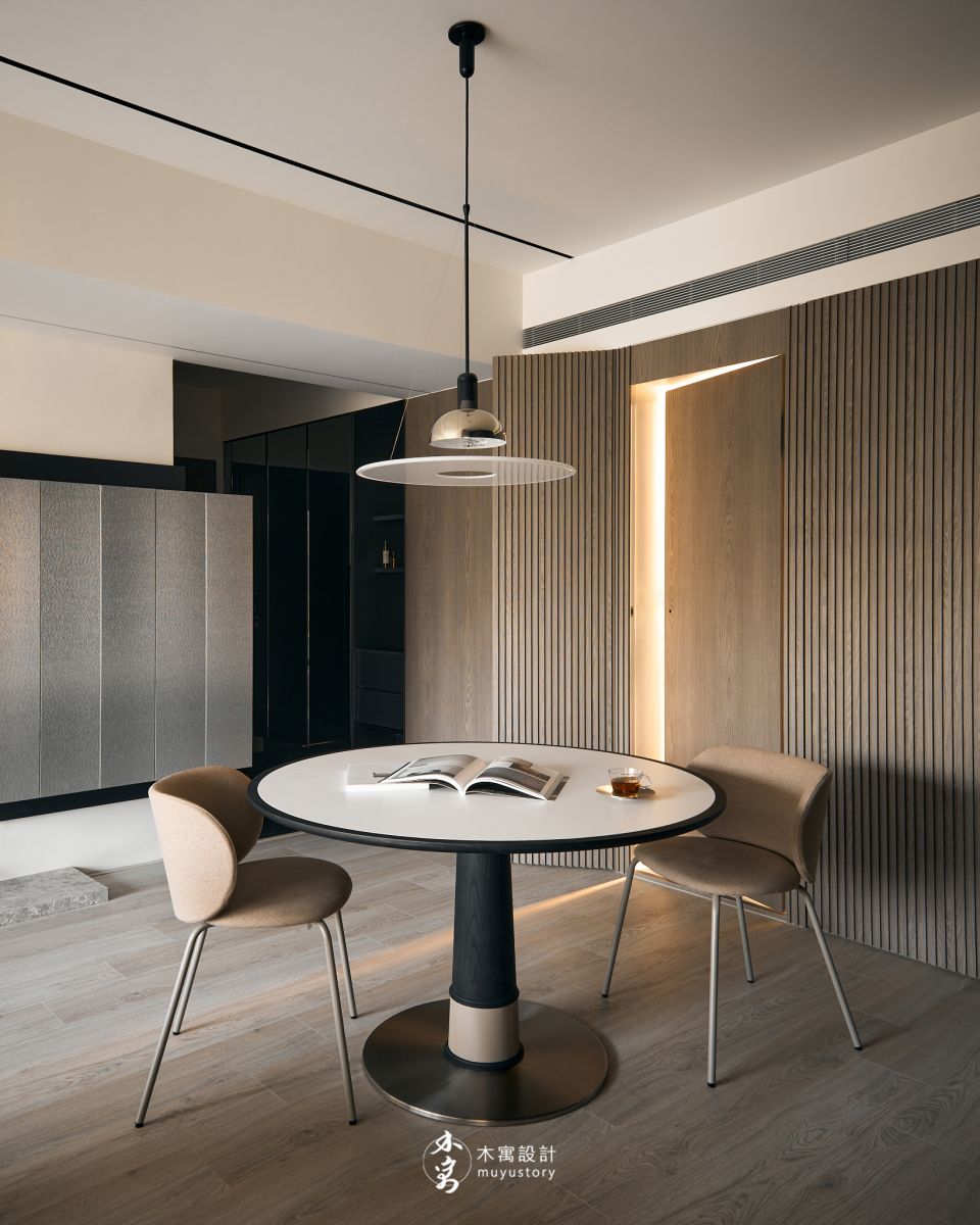 異材質交錯堆疊,隨著自然光線變化,讓空間在每個時刻都有不同表情。關於光、材質與日常共存的空間,藏著屋主一家人剛剛好的生活節奏。