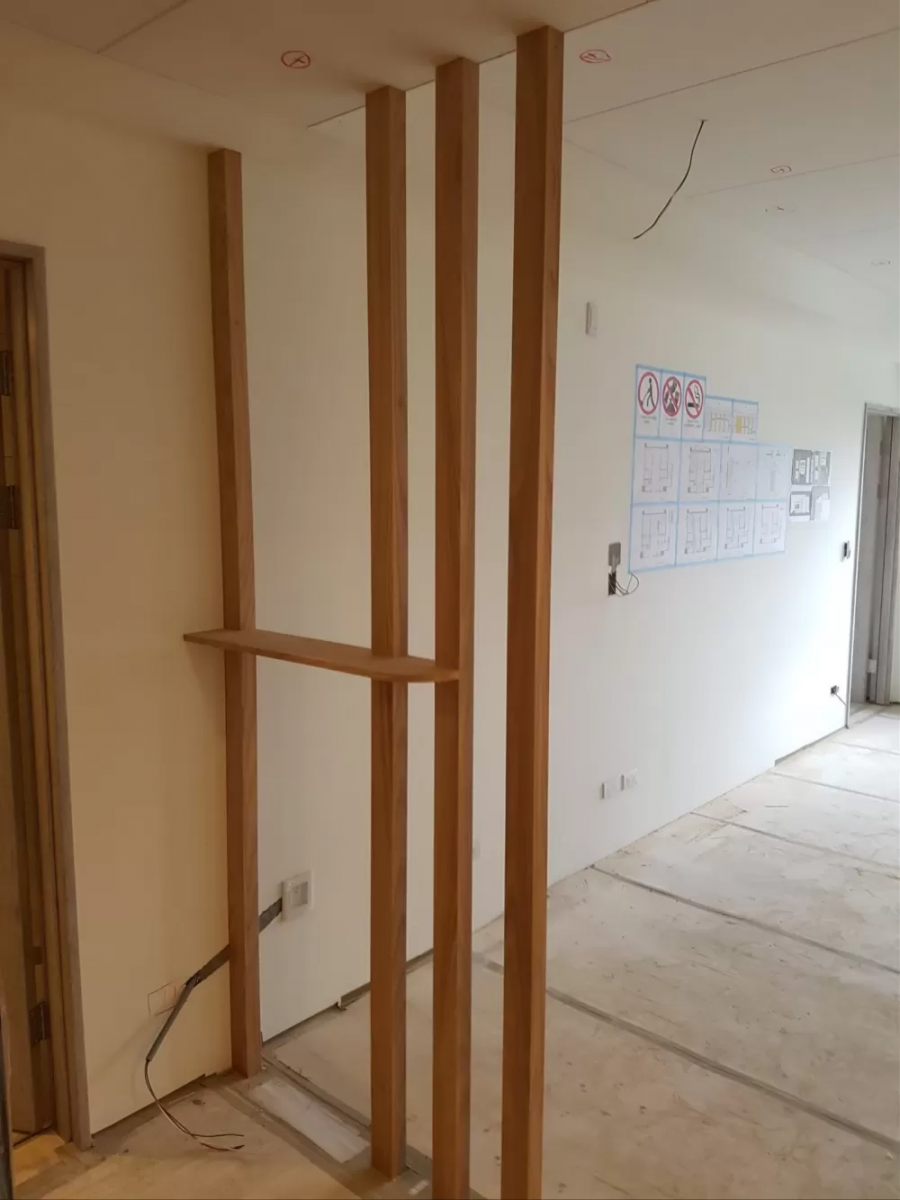 ▲有個大優點是整個都已經鋪了木地板,顏色也還不錯,我們就決定續用了,預算可以少花一些,讚啦!