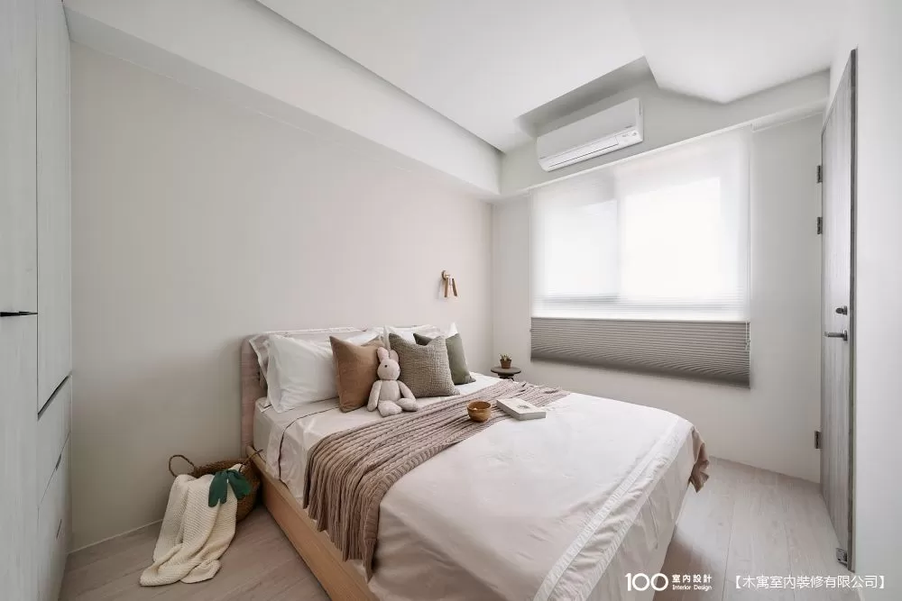 臥室這邊想要柔和一點的感覺,所以床頭跳了一個淺奶茶色,而且也有裝蜂巢簾,入住後才發現蜂巢簾很重要,像寒流來的時候真的覺得會讓室內暖一點XD